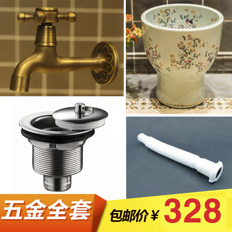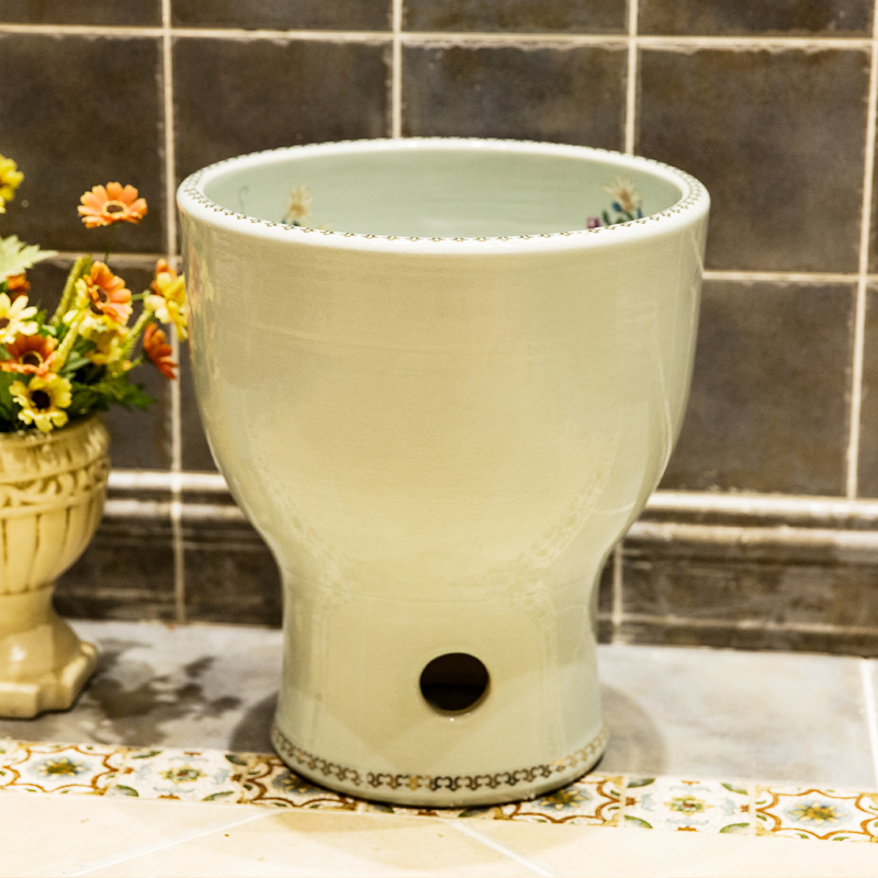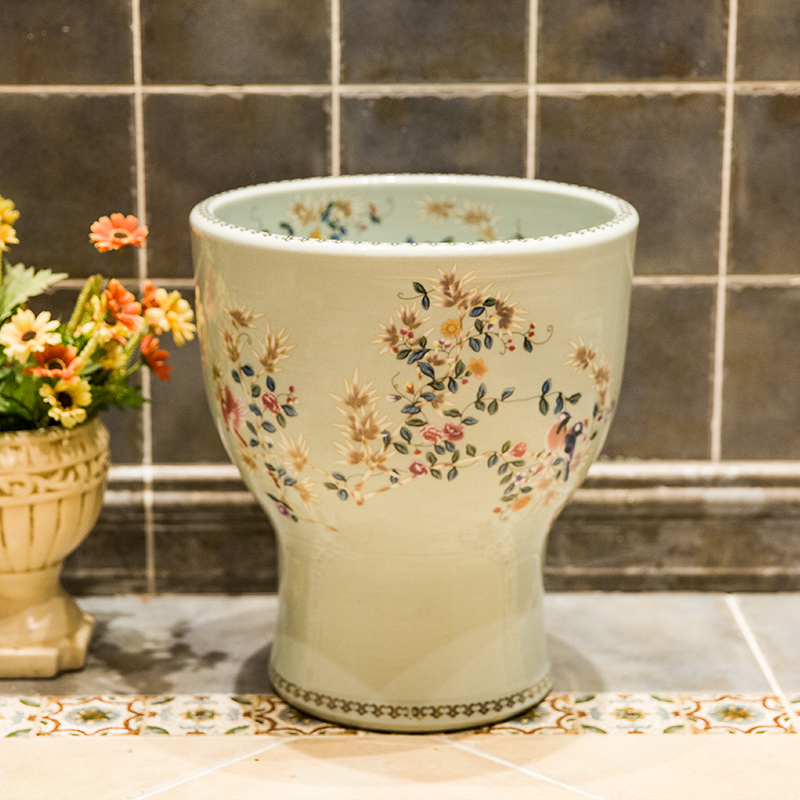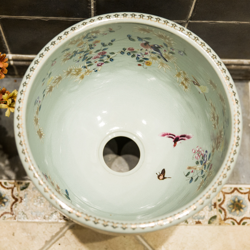Retro Ceramic Mop Pool Art Basin Mop Pool Round Integrated Mop Pool Caliber 35cm Cracks Flower Bird