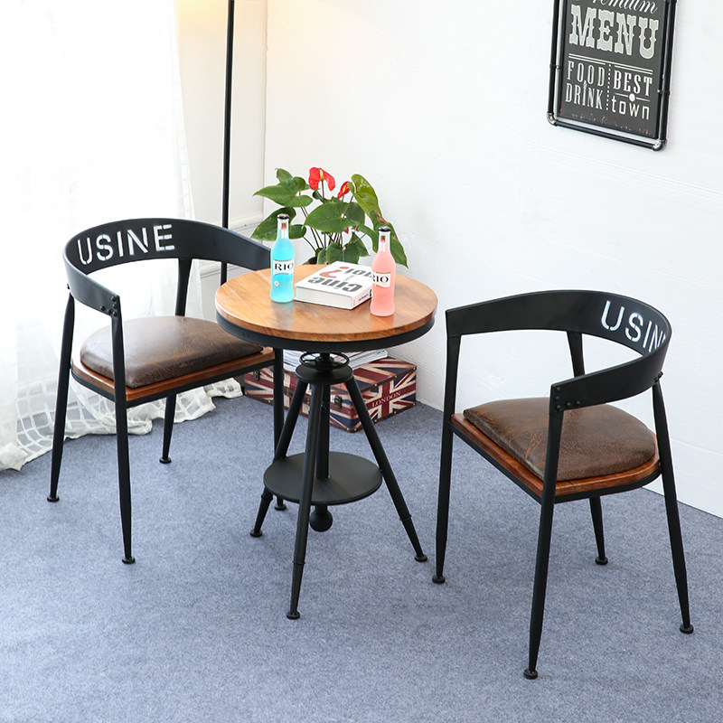 Lifting small round table iron art U type chair solid wood surface iron art U type chair solid wood face cushion iron art small round chair (solid wood face) iron art small round chair (leather cushion) 1 table 2 solid wood surface U type chair 1 table 2 solid wood face leather
