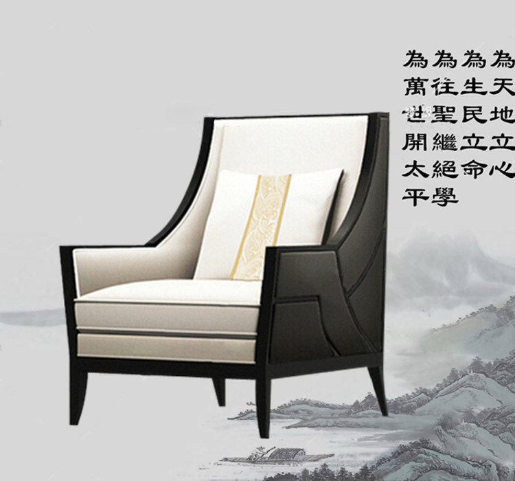 Modern Zen Sofa New Chinese Style Fabric Sofa Combination Solid Wood Three-person Sofa Model House Sales Office Sofa