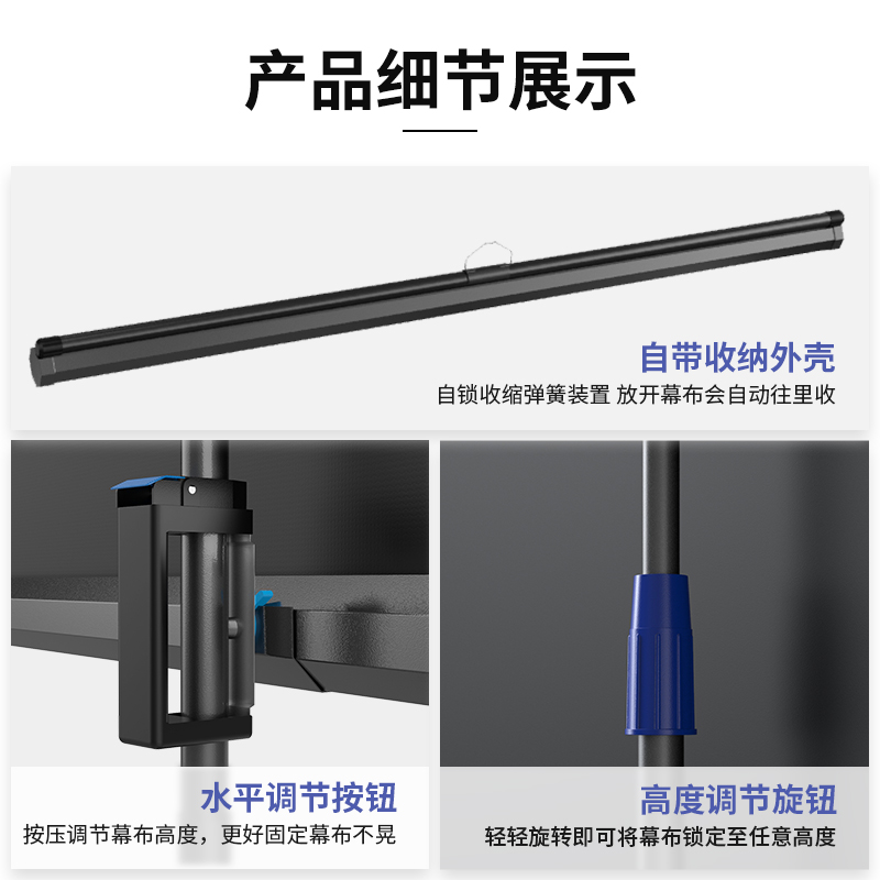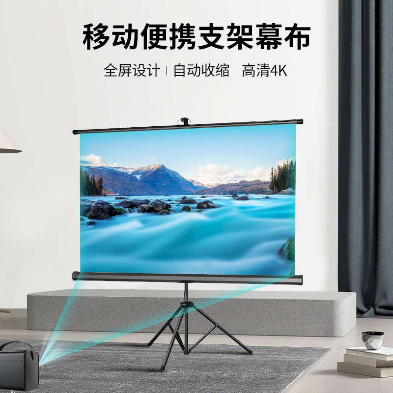 Enlightening bracket curtain cloth mobile portable folding bracket Landing Projection Curtain Cloth Automatic Telescopic Hand Lift Lift Home Office Outdoor Free Installation Perforated High Definition Projector Pitched Screen Cloth