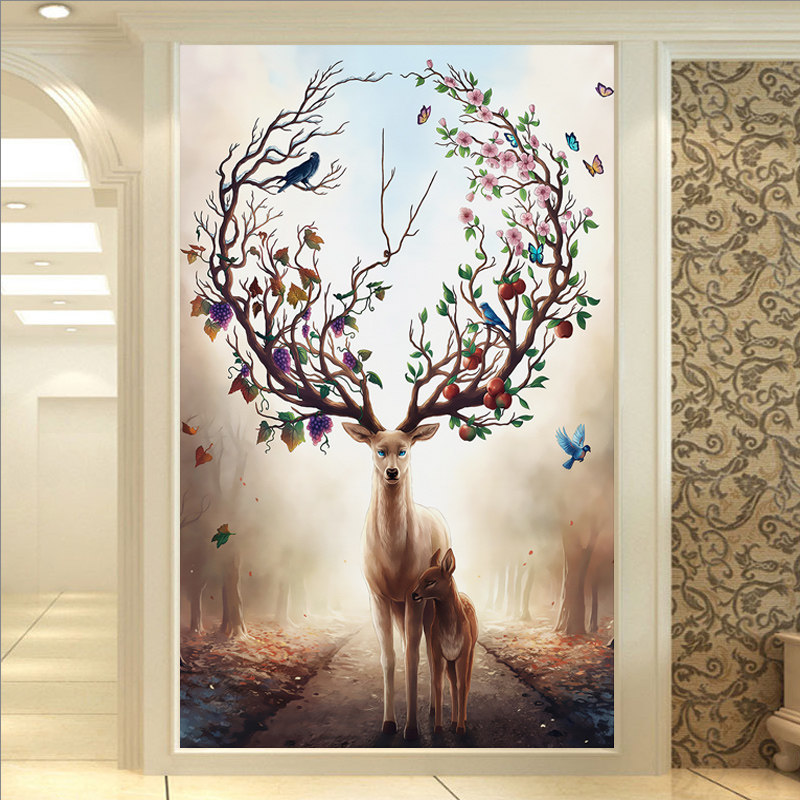 Mona Lisa cross stitch rich deer mother and son love new living room vertical version porch large landscape painting full of embroidery thread