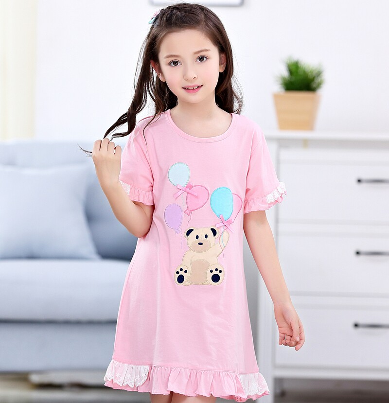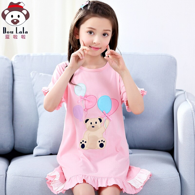 Child Sleepwear Girl Sleeping Dress Pure Cotton Summer Short Sleeve Thin girl Mother and daughter Air conditioning Home Clothing Foreign Dress