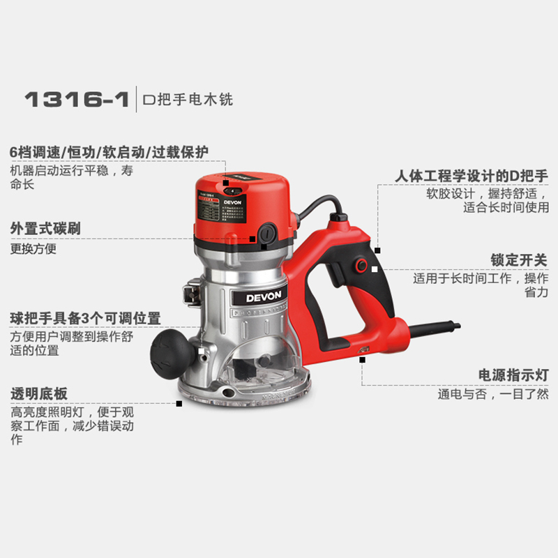 DEVON Highly Electric Wood Engraving Machine Small Milling Woodworking Open Slot Machine High Power Trimming Machine Power Tool 1316