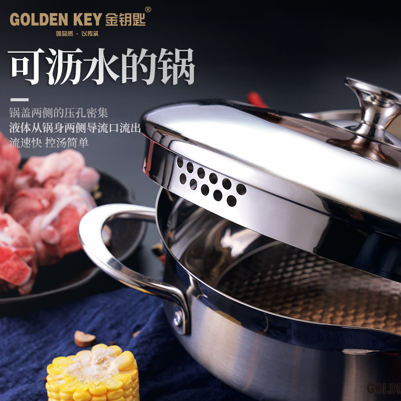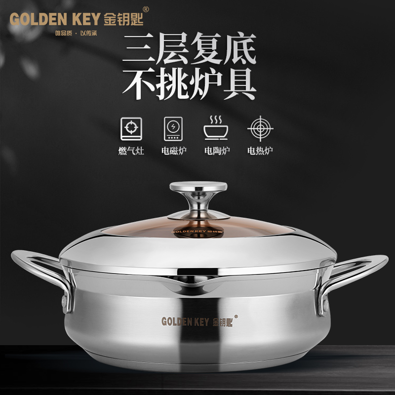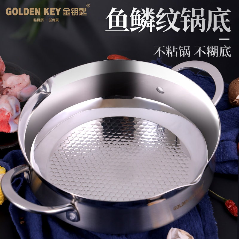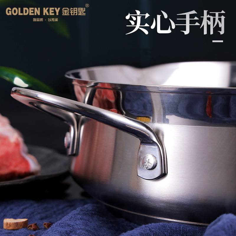 Golden key thickened Hot Pot Pot Stainless Steel compound bottom large capacity hot pot household induction cooker gas 26-30cm