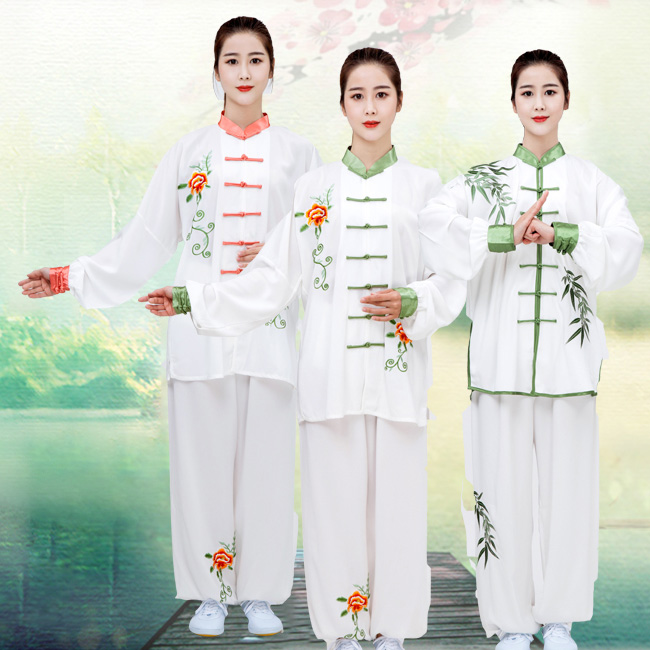 Bamboo leaf embroidery blue and white porcelain embroidery Taiji suit