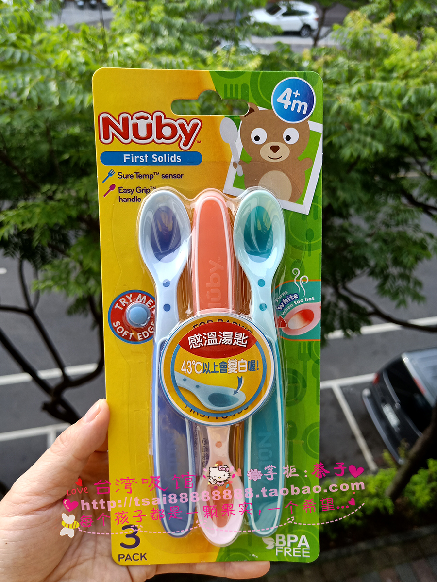 Taiwan Nuby temperature - temperature - sensing tablespoon 3 baby - colored soft tablespoon baby's supplementary tableware set