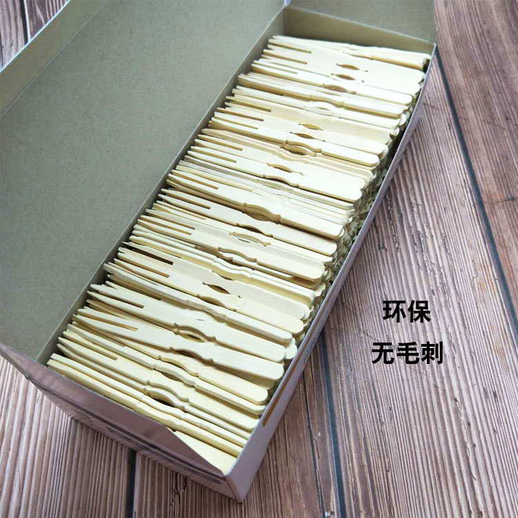 Boutique bamboo fruit fork bamboo cake fork fruit sign boxed snack fork disposable fork two-tooth fork