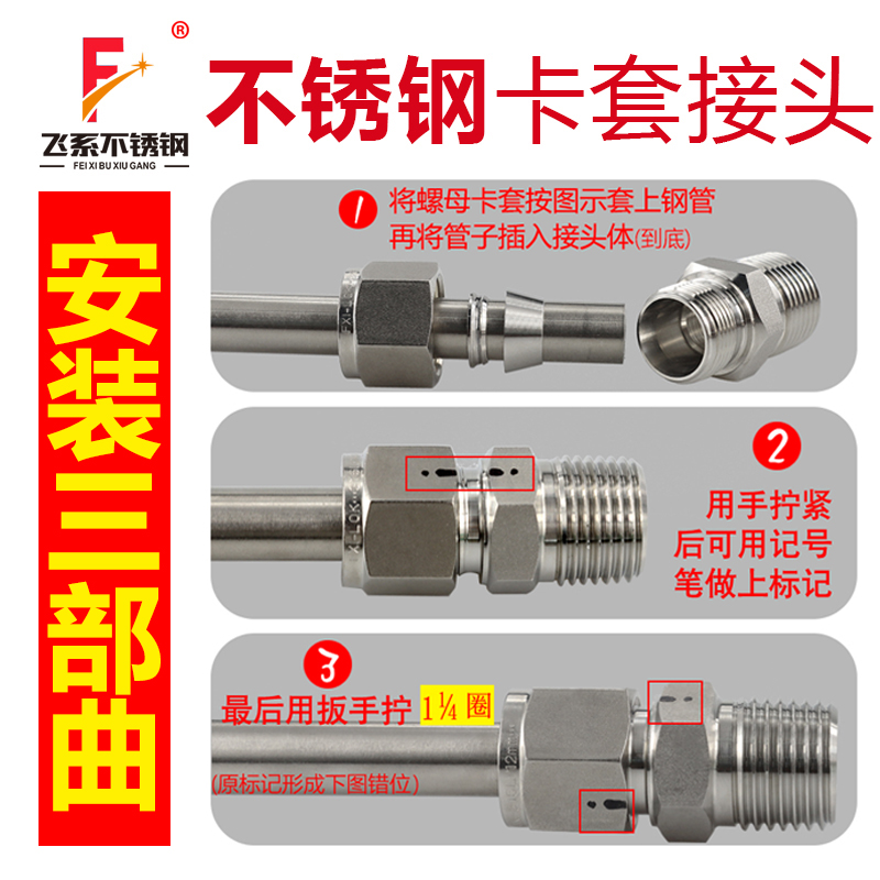 304 stainless steel ferrule joint connected to steel pipe copper pipe terminal gas source pipe right angle elbow quick metric thread