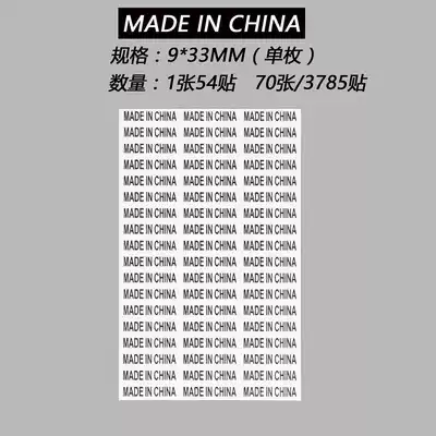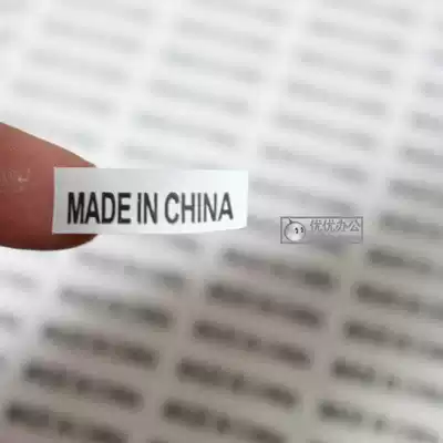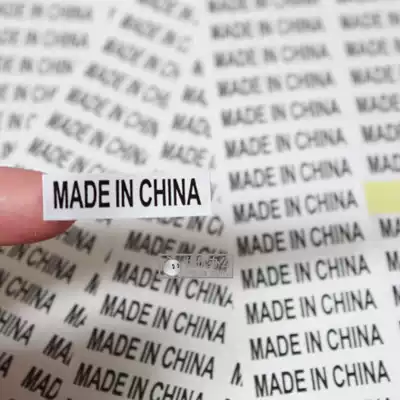 made in china label sticker English black lettering white background Chinese manufacturing label