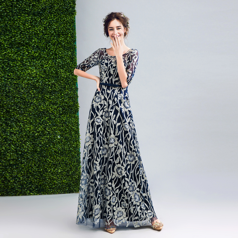 (limited time special) Bright hot gold blue dinner Annual stage show show wedding dress 036