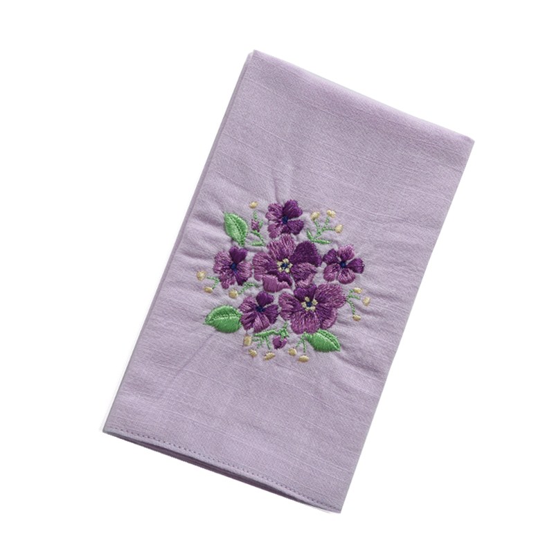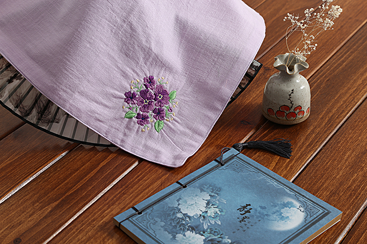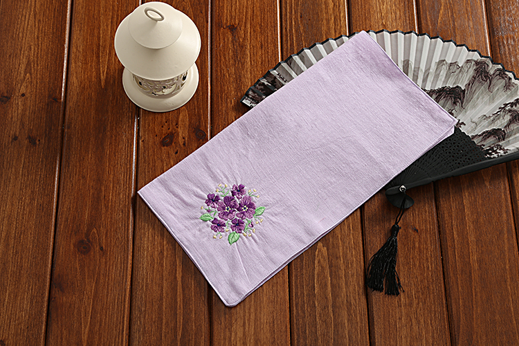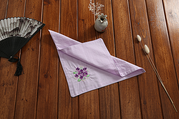 Antique handkerchief embroidered purple pansy handkerchief ladies embroidered cotton hemp handkerchief female sweat-absorbent square can be embroidered characters