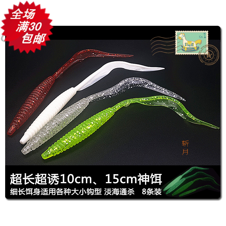 Road House decapitated super-long ultra-lured soft-worm soft bait roll tail maggot sickle tail 10cm 15cm 8 strips