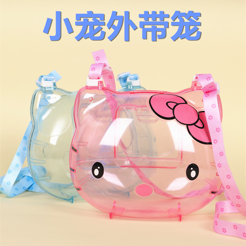 Outside with hamster cage blue outside with hamster pink KT cat outside with cage blue KT cat outside with cage pink