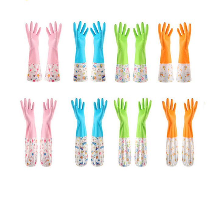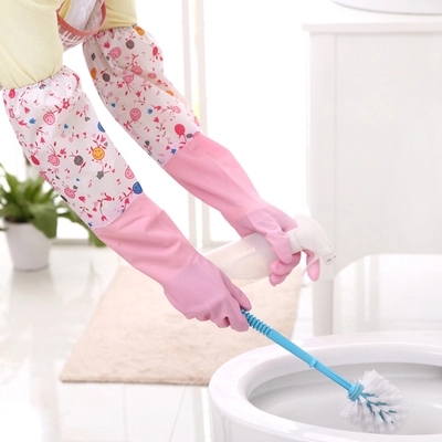 Lengthened dishwashing gloves Kitchen Plus Suede Waterproof Durable Rubber thickened Domestic cleaning washed clothes rubber long gloves