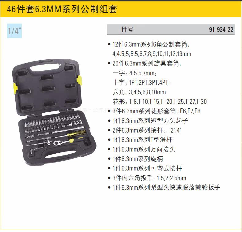 STANLEY STANLEY 46-PIECE 6 3MM SERIES METRIC KIT MACHINE TOOL KIT 91-934-22