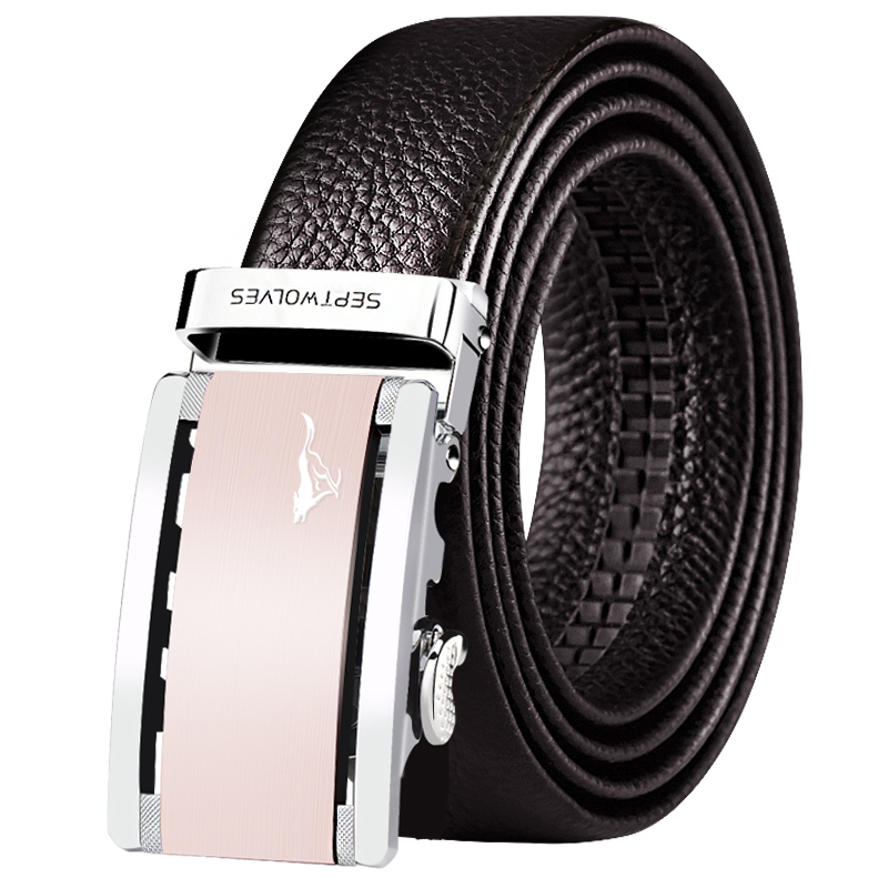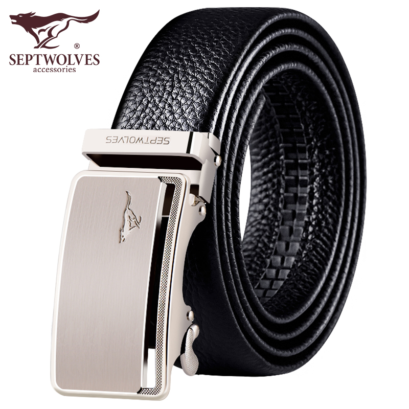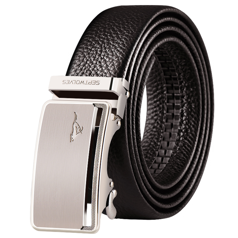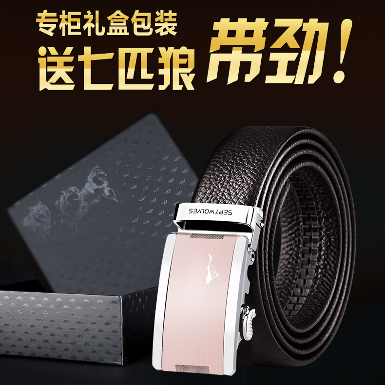 Seven Wolves Men Genuine Leather Strap Automatic Strap Head Layer Bull Leather Belt Male Business Gift Box Casual Youth Pants Strap