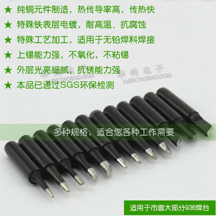 Lead-free constant temperature 936 welding station soldering iron head horseshoe-shaped tip flat mouth knife head type 900m-t-k welding head