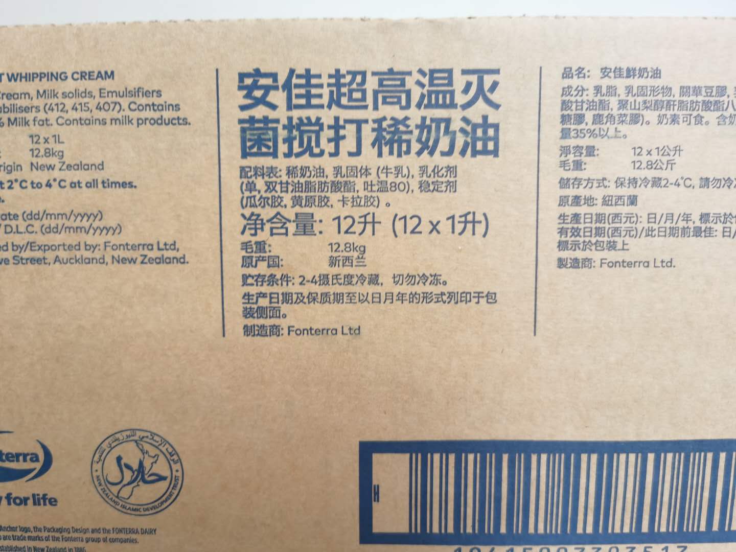 The whole box of Anjia light cream animal decorative cream 1L cake dessert milk cover egg tart and other baking materials