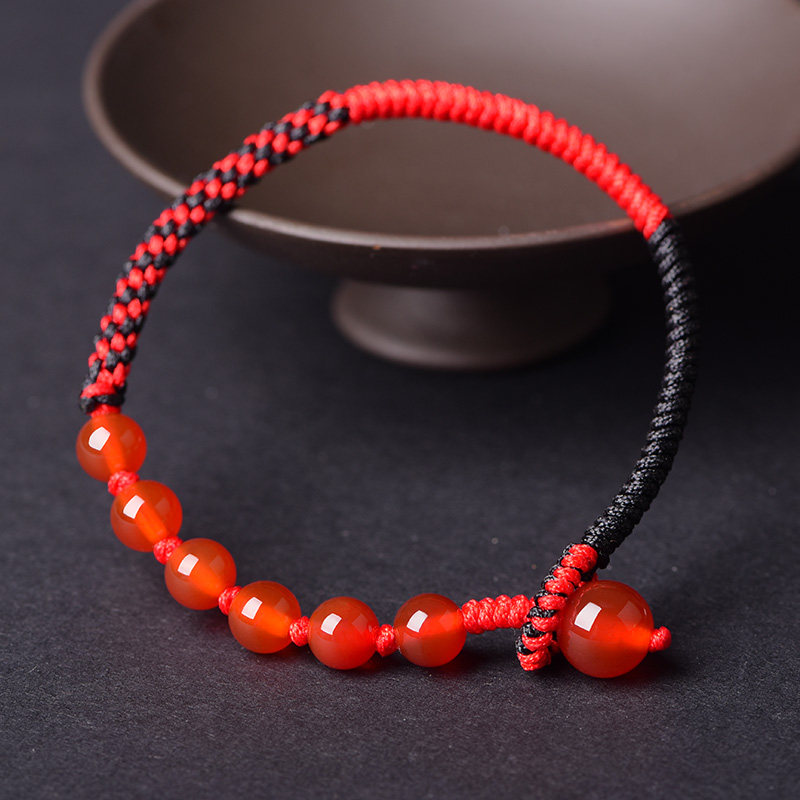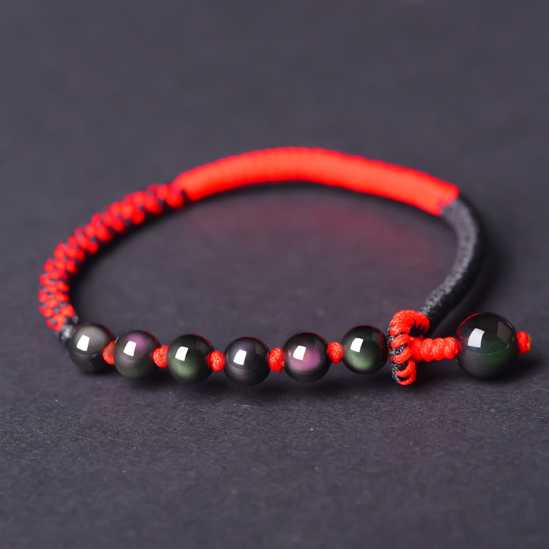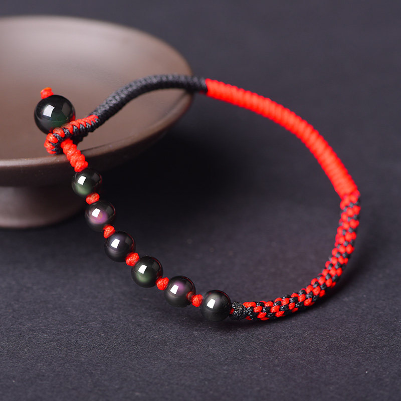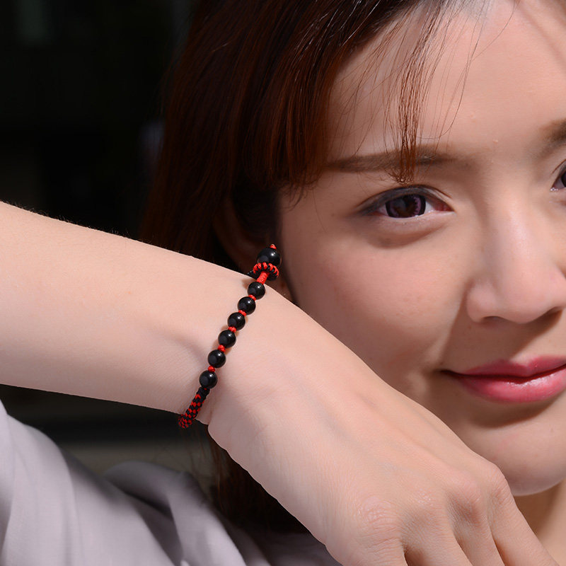 Fuyou Guy Black Shining Stones hand-woven red rope Handmade the year to run the mascot for the male and female couples