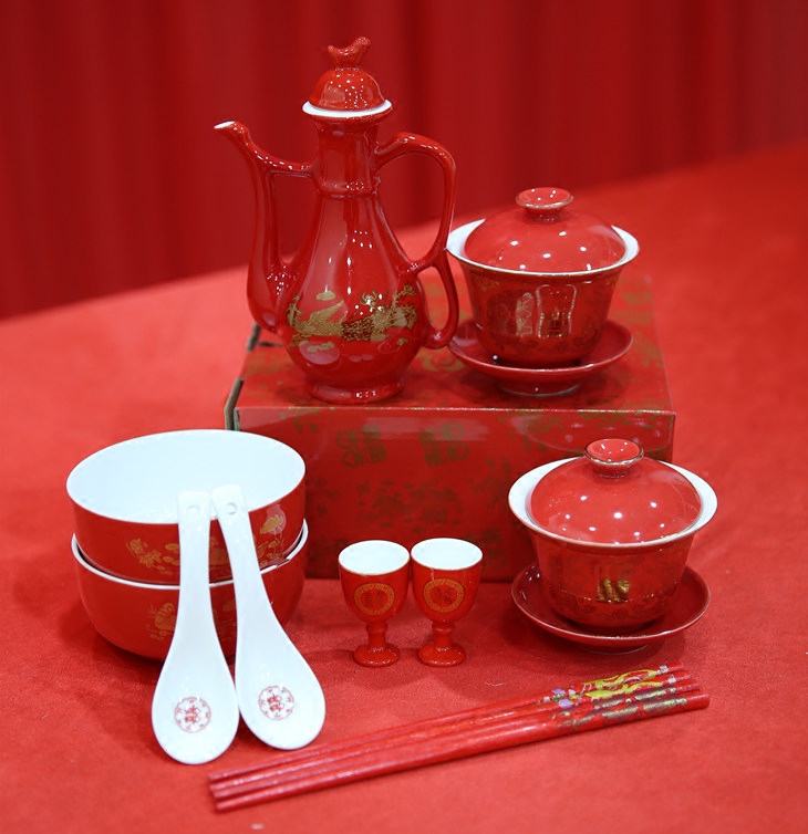 A pair of tea bowls, a pair of hi bowls, a pair of bows and arrows, a pair of electronic braziers, LED charcoal-fired braziers, a saddle, a six-piece set of Chinese red cloth circles