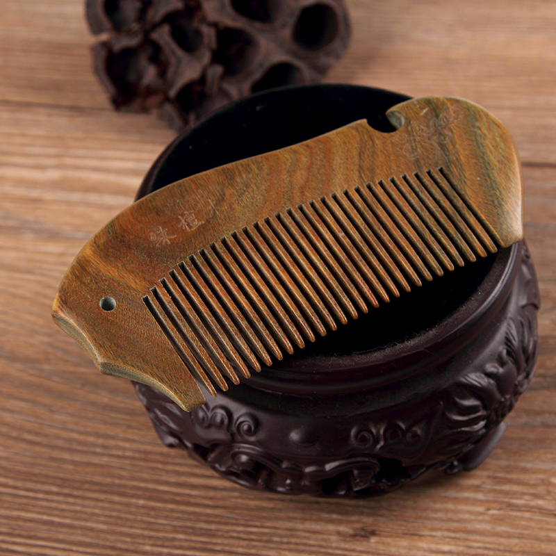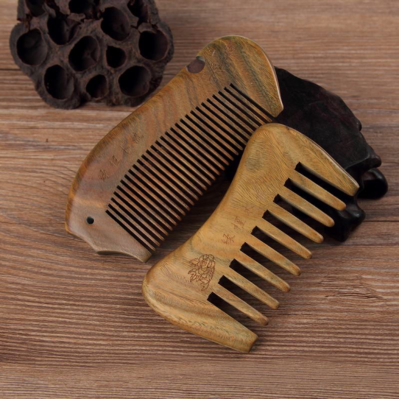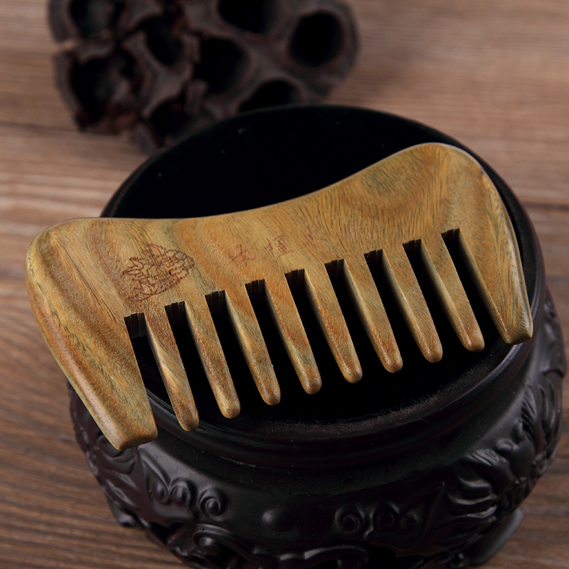 Natural Green Sandalwood Comb Massage Antistatic Wide Teeth Curly Hair Sandalwood Comb Birthday Gift Girls Meridians Comb
