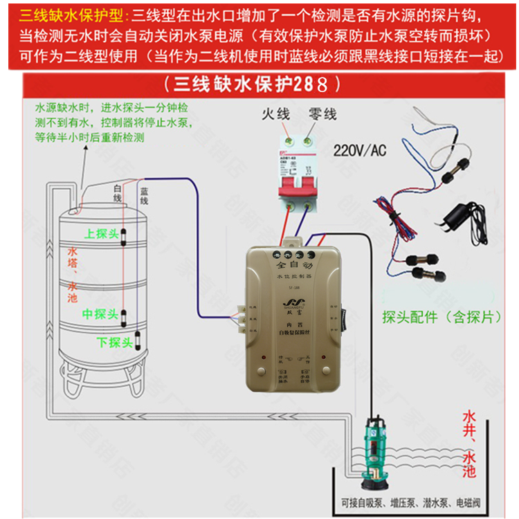Small three-wire water shortage protection monitor Small two-wire water monitor Small two-wire rich two-wire water monitor Small two-wire drainage monitor Monitor wiring 10 meters{click 2 under 20 meters
