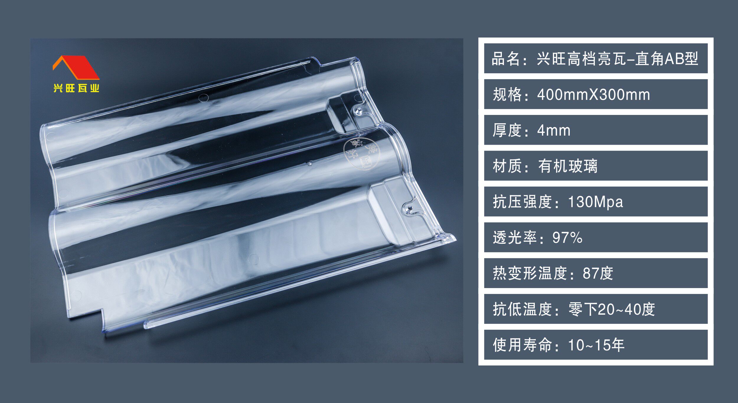 Factory direct right angle organic glass glass bright plastic tile greenhouse ceramic special bright tile with anti-pour water with barb
