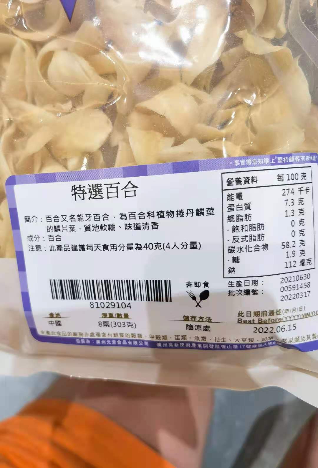 Hong Kong Upstairs Special Lily 303 gr Dry goods Packaging Longtooth lilies Soft glutinous clear aromas natural no sulphur