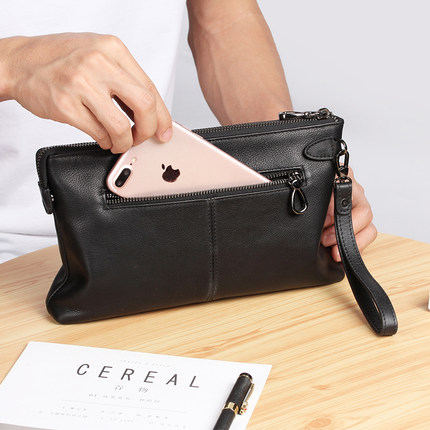 Genuine leather handbag men's large capacity business envelope kits trendy Korean version fashion casual headlayer bull leather hand grip men's bag