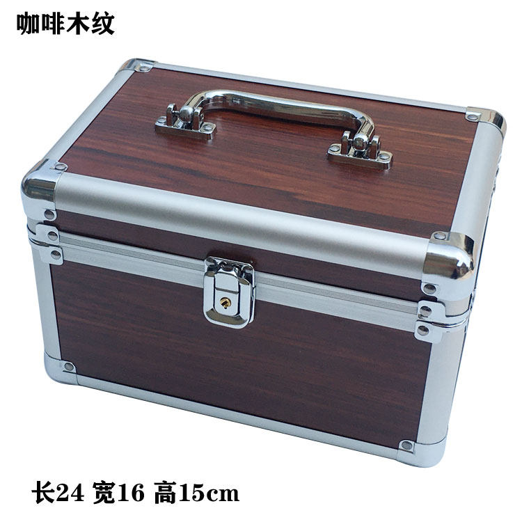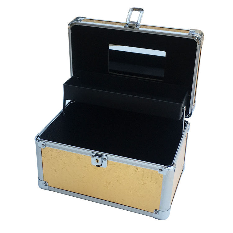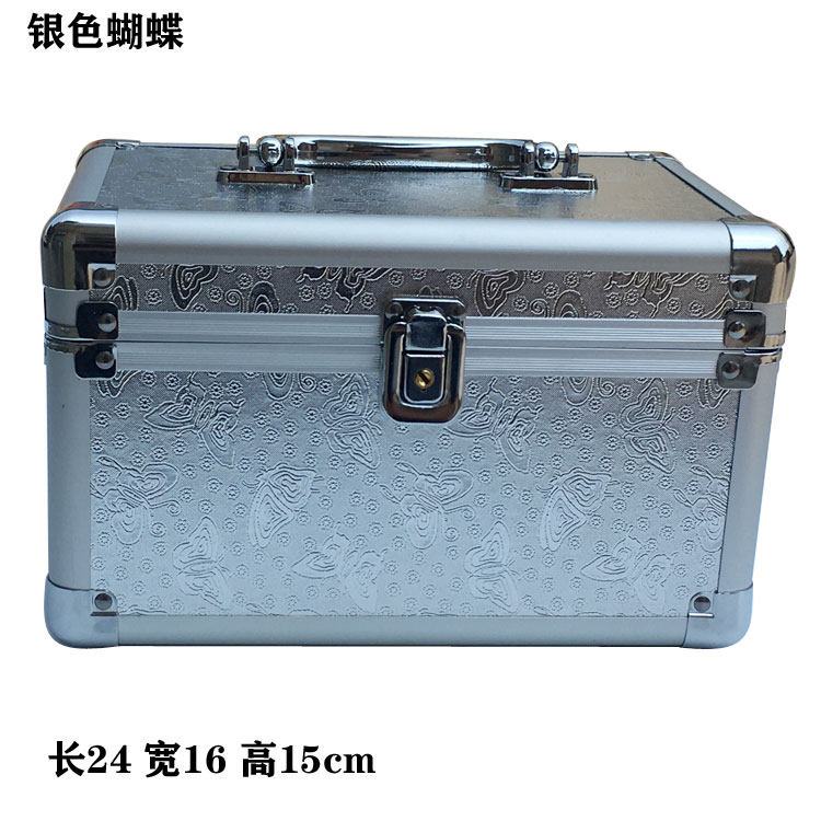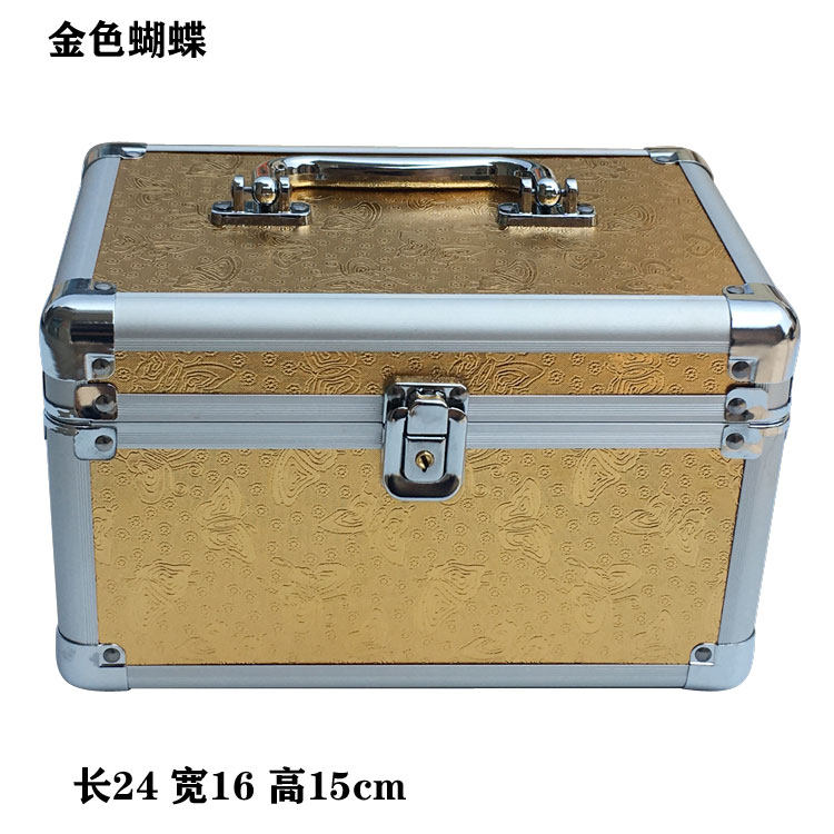 Aluminum alloy cosmetic case portable double-layer small medium portable storage box professional lock hard cosmetic bag