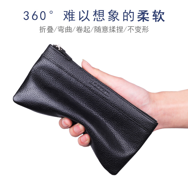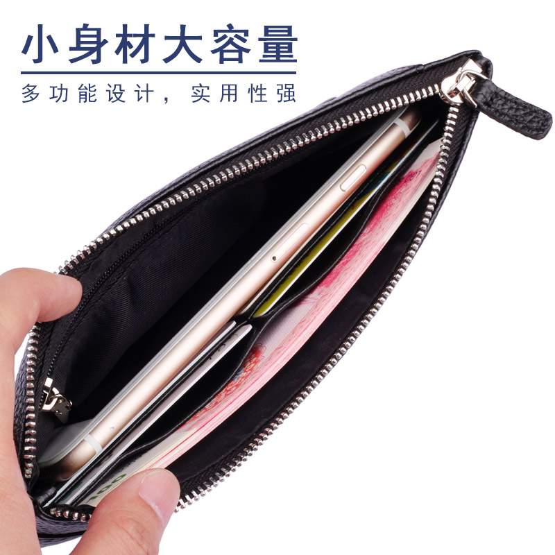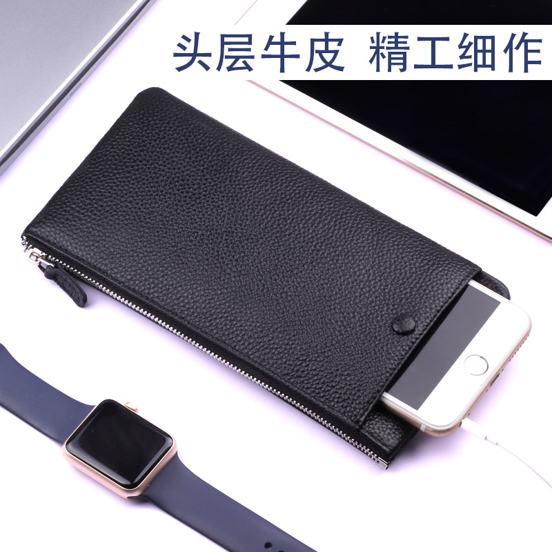 2022 new men's handbag wallet men's long version zipper leather first layer cowhide hand change small mobile phone bag