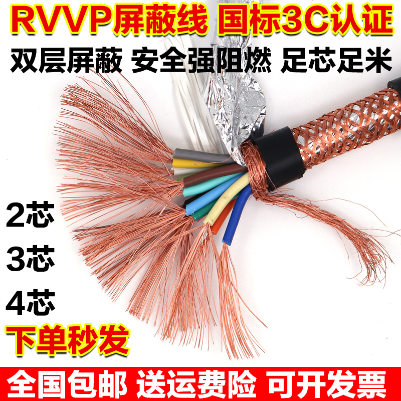 National standard pure oxygen-free copper RVVP2 3 4 6 core 0 3 0 5 0 75 1 1 5 square 2 5 shielded signal line