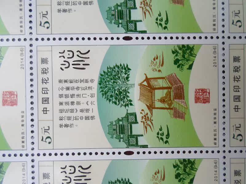 2014 Revenue Stamp "Lingnan Hook Sink" Face value 5 yuan New raw rubber full product a small price