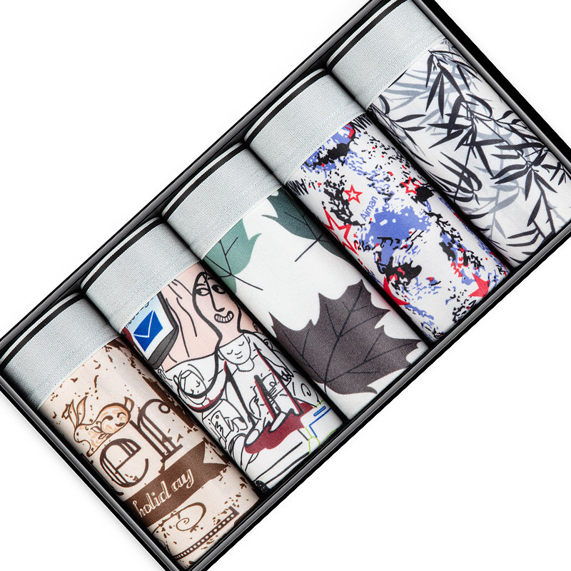 Men's underwear Men's boxer shorts Ice silk breathable youth printed shorts slits boys four corners bottom pants head trend summer