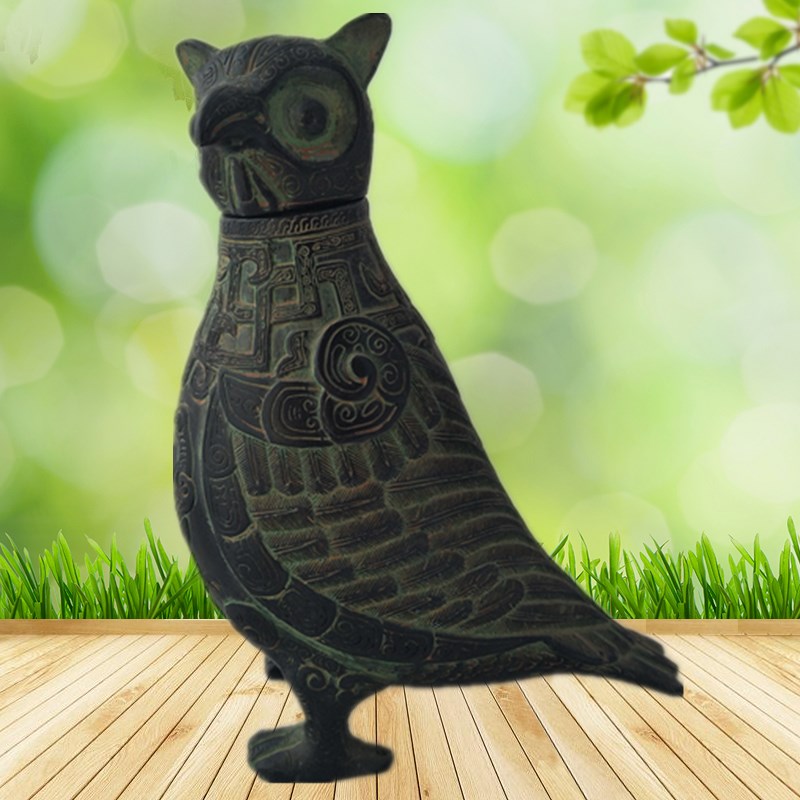 Antique Home Decoration Ornament Bronze Owl Ancient Wine Container Wine Set TV Cabinet Ornament