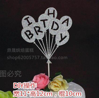Birthday cake balloon insert card Flash gold cake insert card plug-in decoration baking sequin dessert table cake insert flag