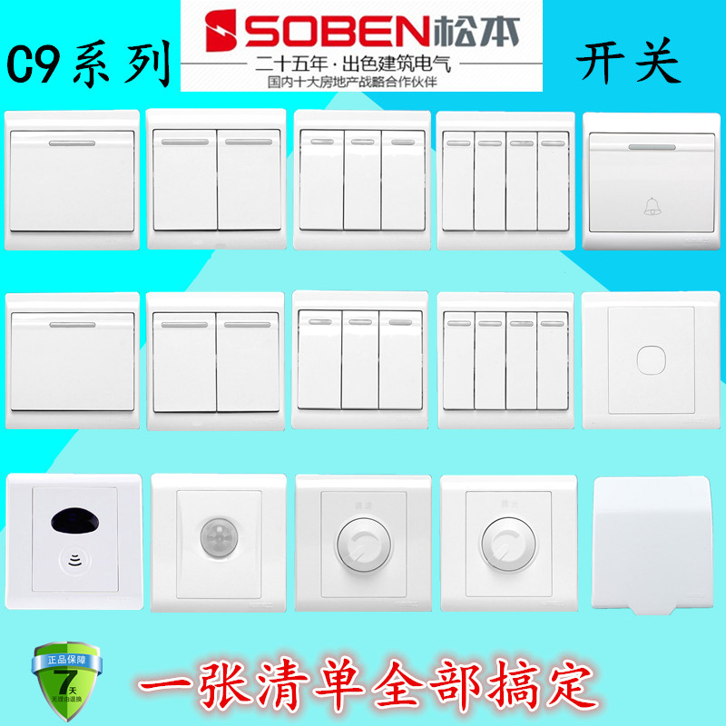 SOBEN Matsumoto electrician switch socket C9 series open five holes 23 inserts 16A three-plug television phone