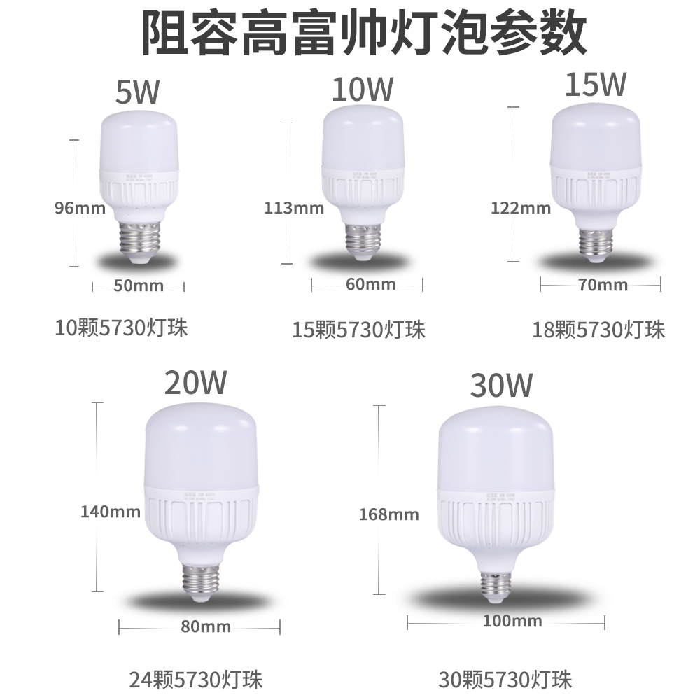 Gao Fushuai LED energy-saving bulb e27 screw 5W 10W 15W ultra-bright household lighting dust-proof white light bulb