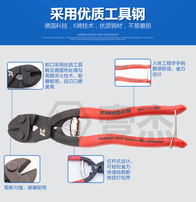 Original German K brand 087111-200 super labor-saving wire breaker rebar shear 8 inch small steel shear wire pliers
