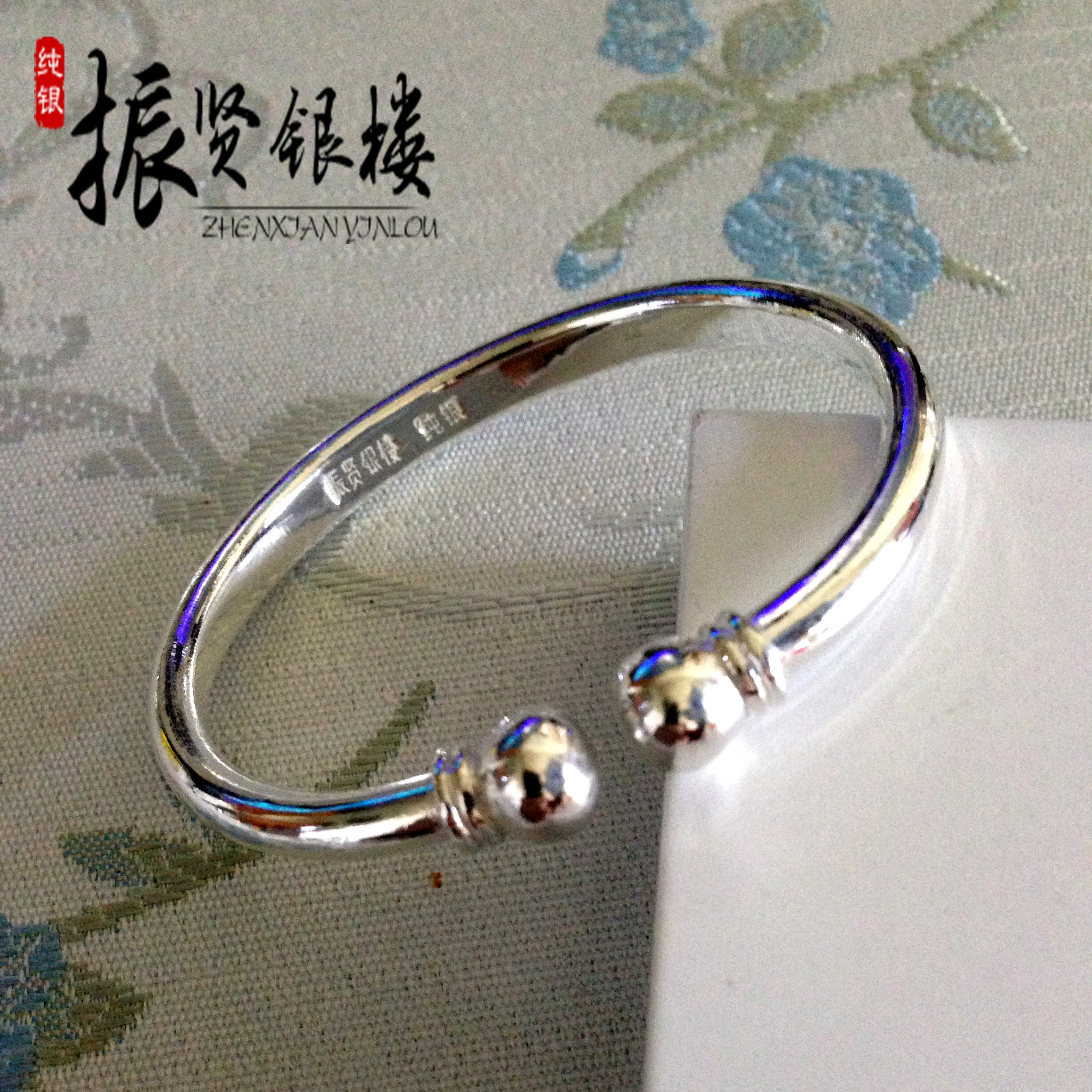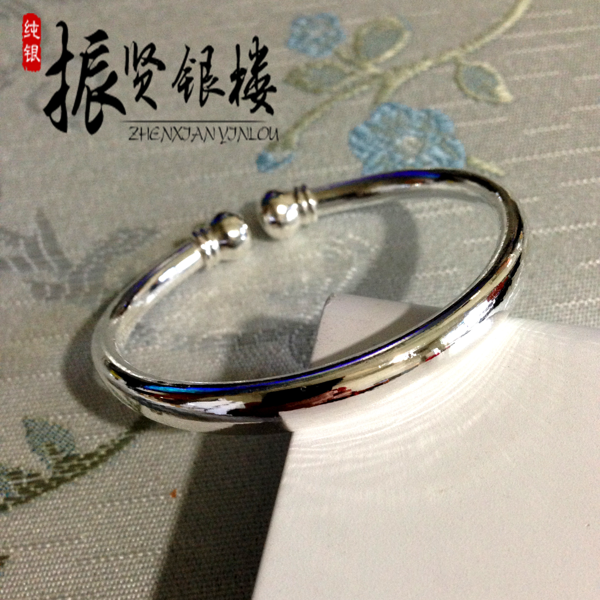 Zhenxian silver Building 9999 sterling silver round garlic narrow thick loach back garlic hand-made foot silver round semicircular bracelet