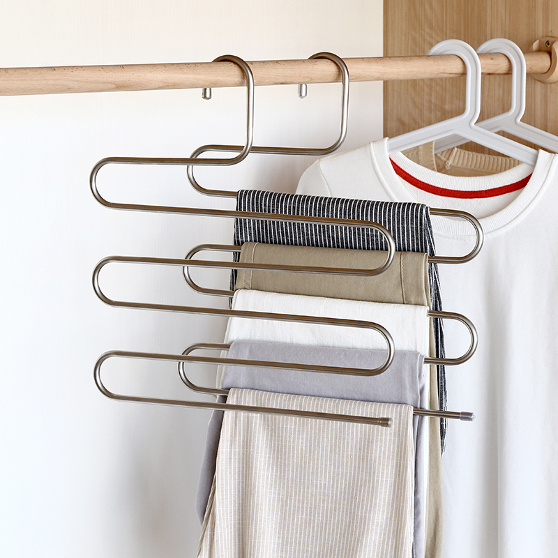 3 clothes stainless steel containing clothes hanger wardrobe S type multifunction magic pants frame multilayer pants hanging clothes rack hanging clothes brace