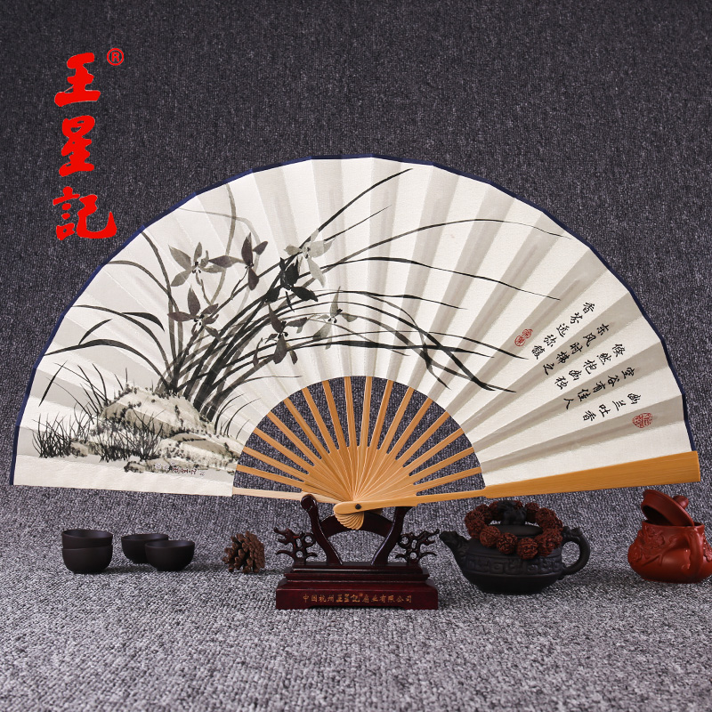 Wangxing fan paper fan hand-drawn jade bamboo folding fan Chinese fan ancient fan craft collection gift fan