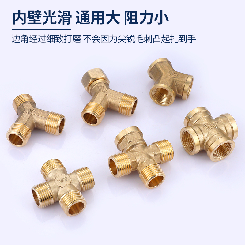 4 points copper tee elbow direct inner and outer wire movable joint pipe ancient double male screw four-way water pipe gas solar accessories
