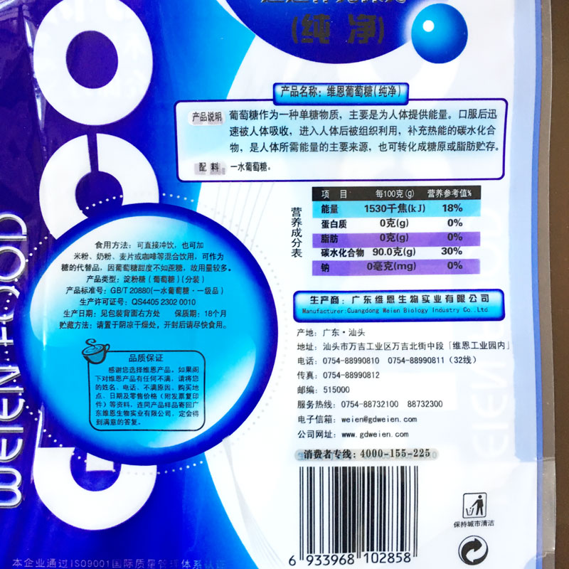 Wynn glucose powder 500g with mouth pure adult fitness bag packaging pure packaging