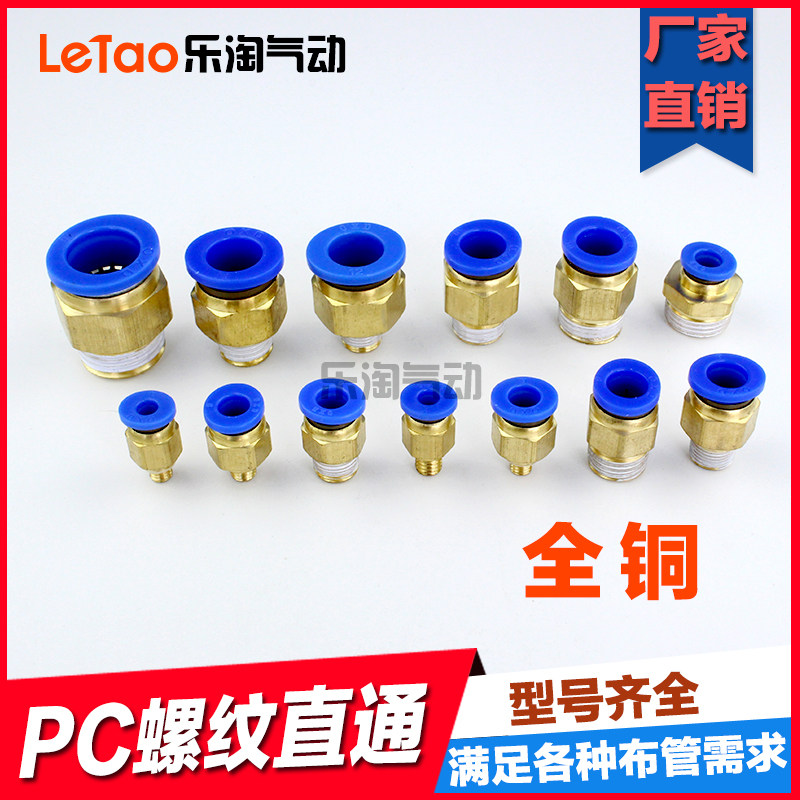 Connector Pneumatic quick plug trachea connector PC male thread straight through 8mm PC4PC6 all copper connector