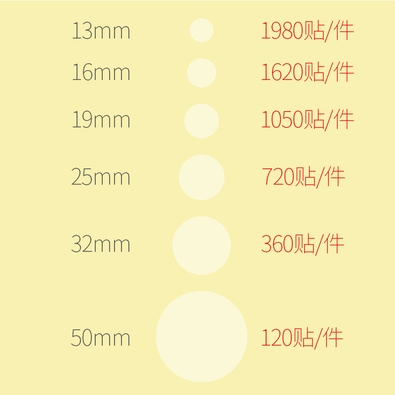 2 packs (transparent sealing paste 13mm) Total of 3960 stickers 2 packs(transparent sealing paste 16mm) Total of 3240 stickers 2 packs(transparent sealing paste 19mm) Total of 2100 stickers