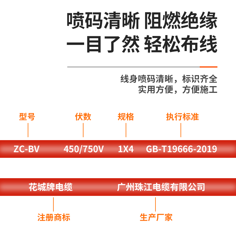 Pearl River Wire official national standard pure copper core flame retardant BV1 5 2 5 4 6 square home improvement single-strand hard wire