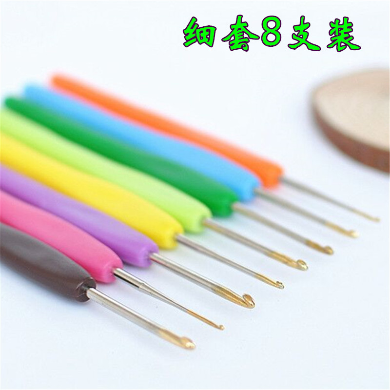 Color Soft Handle Crochet Set Coarse Set Fine Set 8 Pack Candy Color Aluminum Alloy Rainbow Crochet Manual DIY Tools