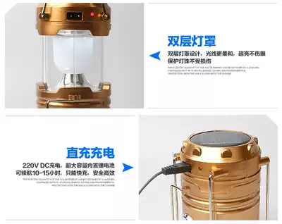Outdoor tent camping light power outage portable emergency LED light rechargeable solar night fishing flashlight kerosene lamp