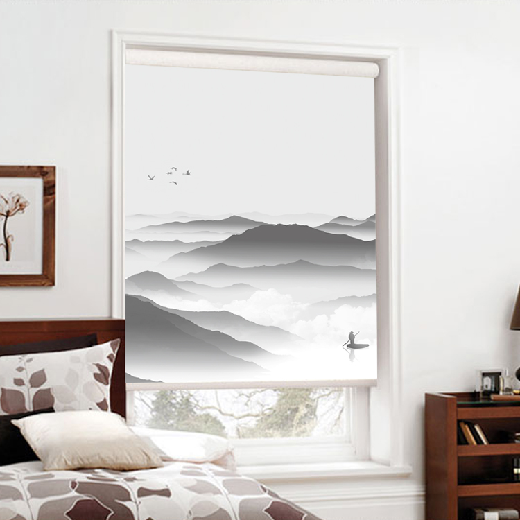 New Chinese ink Ink Classical Mountain River View Yarn Through Curtain Partition Screen Country Painting Shading Office Roller Shutters